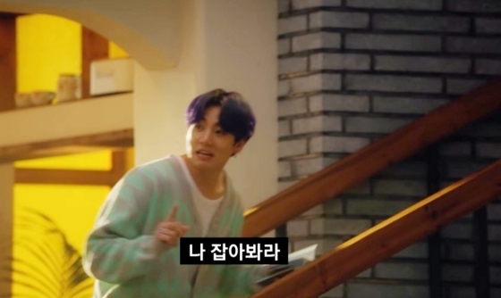 지민이 여권을 가져 오라는 말에 정국은 엉덩이를 씰룩쌜룩 흔들며 "나 잡아 봐라~" 라고 말하면서 잽싸게 도망치며 꾸러기 같은 막내 매력을 한껏 발산했다.