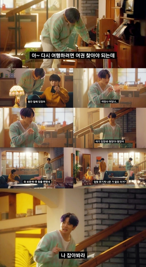 정국은 3편 'ARE YOU READY?'에서 "아~다시 여행하려면 여권 찾아야 되는데" 라며 집안 곳곳을 뒤지며 여권을 찾는 열연을 펼쳐 눈길을 끌었다.