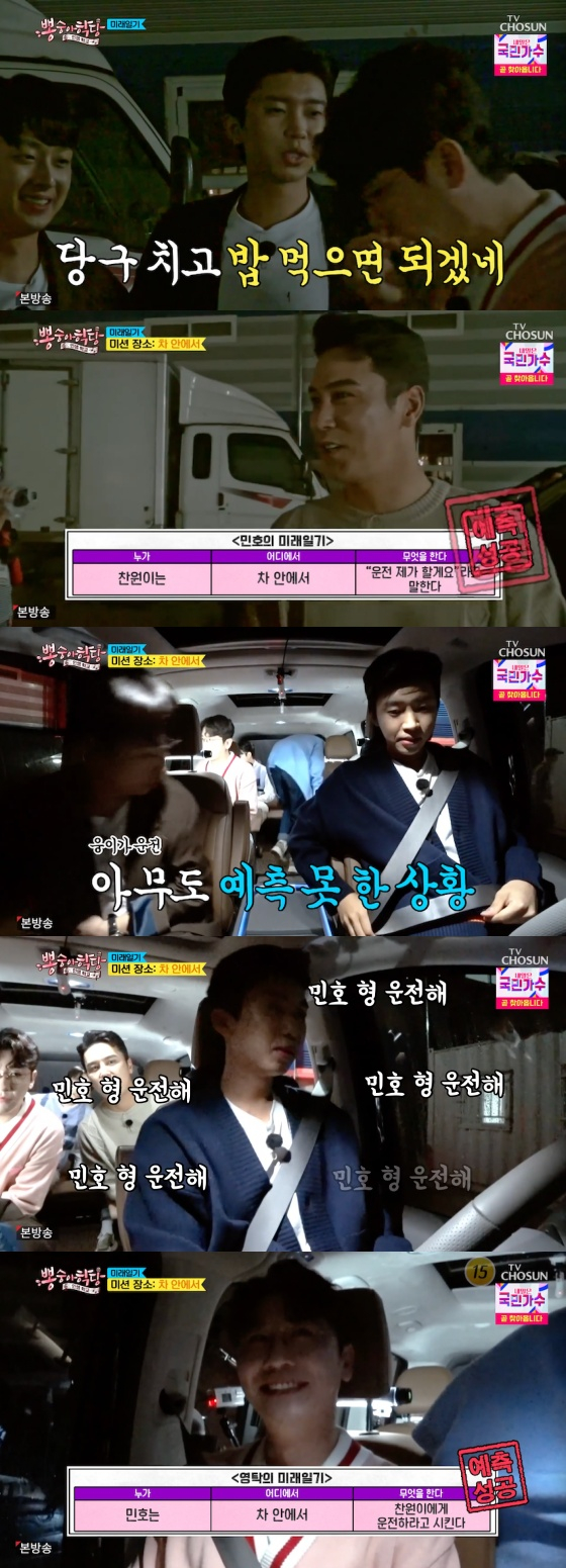 평소 운전을 담당하던 장민호는 일부러 "눈이 아프다"고 했다. 이찬원은 "그럼 내가 하고 올 때 형이 하겠냐? 편한대로 해라"라고 말했고 장민호는 미션에 성공했다.