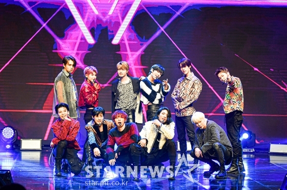 한일 합작 11인조 보이그룹 니크(NIK)가 27일 오후 온라인 생중계로 진행된 데뷔 싱글 앨범 '산타 모니카/유니버스'(Santa Monica/Universe) 쇼케이스에 앞서 포즈를 취하고 있다.