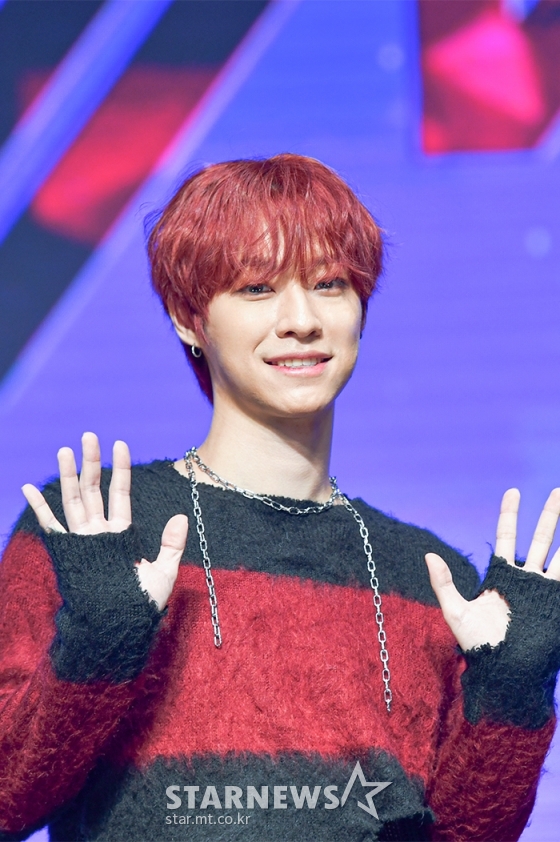 한일 합작 11인조 보이그룹 니크(NIK) 윤솔이 27일 오후 온라인 생중계로 진행된 데뷔 싱글 앨범 '산타 모니카/유니버스'(Santa Monica/Universe) 쇼케이스에 앞서 포즈를 취하고 있다.