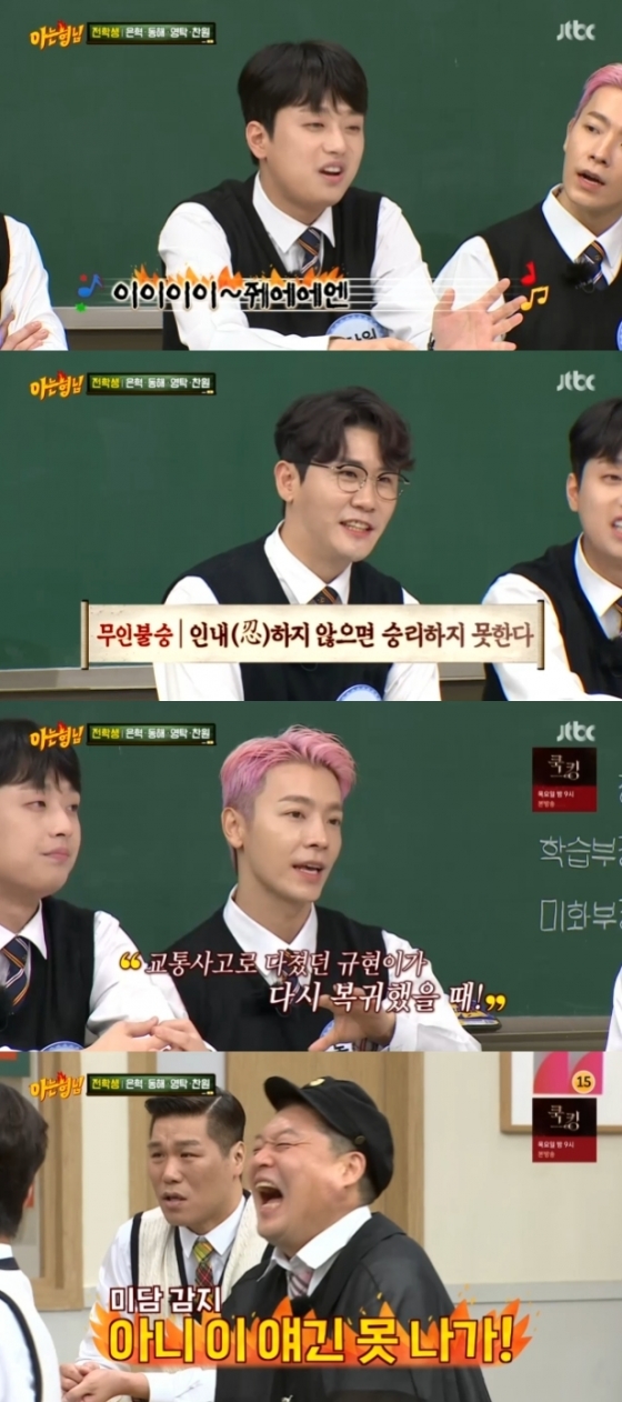 이날 강호동은 게스트들에게 기억에 남는 무대를 물었다. 먼저 동해는 "규현이가 교통사고가 나고 다시 돌아왔을 때가 기억에 남는다. 우리가 이거 딱 하나인데 라는 생각이 들었다"라고 전했다.