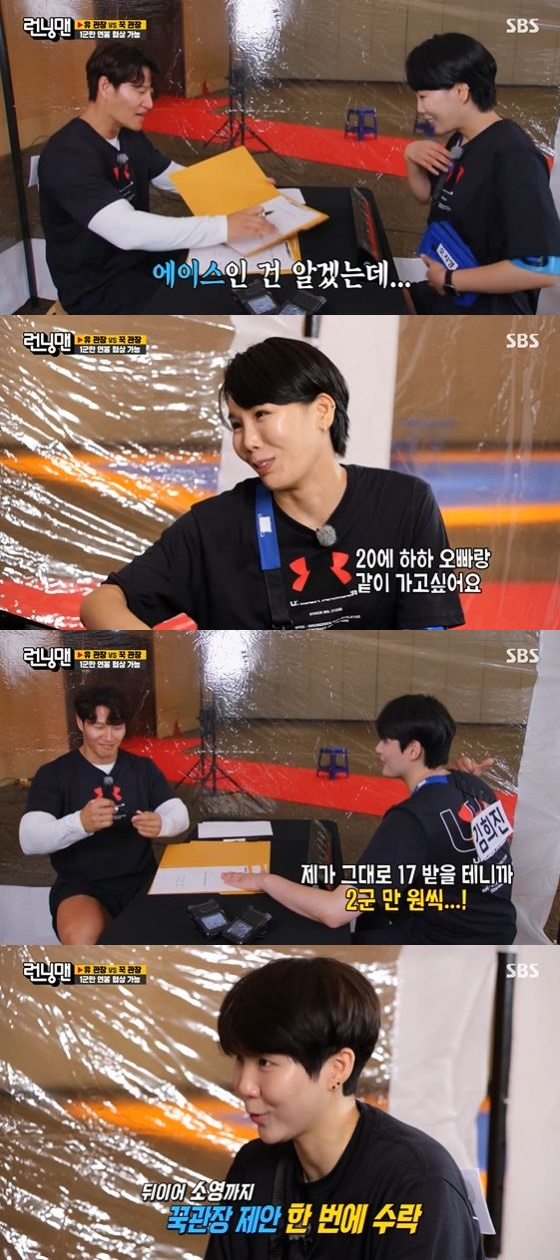 이날 오지영은 김종국의 '호랑이 체육관'의 첫번째 연봉협상자로 등장했다. 오지영은 앞선 족구에서의 활약에 "저 뽑으면 후회 안 한다고 말씀 드렸죠"라며 당당하게 50만원을 요구했다.