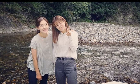 공개된 사진 속 유민은 후지이 미나와 함께 계곡에서 사진을 촬영하고 있다. 두 사람의 돈독한 우정이 돋보인다.