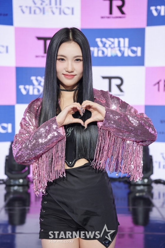 걸그룹 트라이비(TRI.BE) 소은이 12일 오후 온라인 생중계로 진행된 첫 번째 미니앨범 '베니 비디 비치'(VENI VIDI VICI) 발매기념 쇼케이스에 앞서 포즈를 취하고 있다.