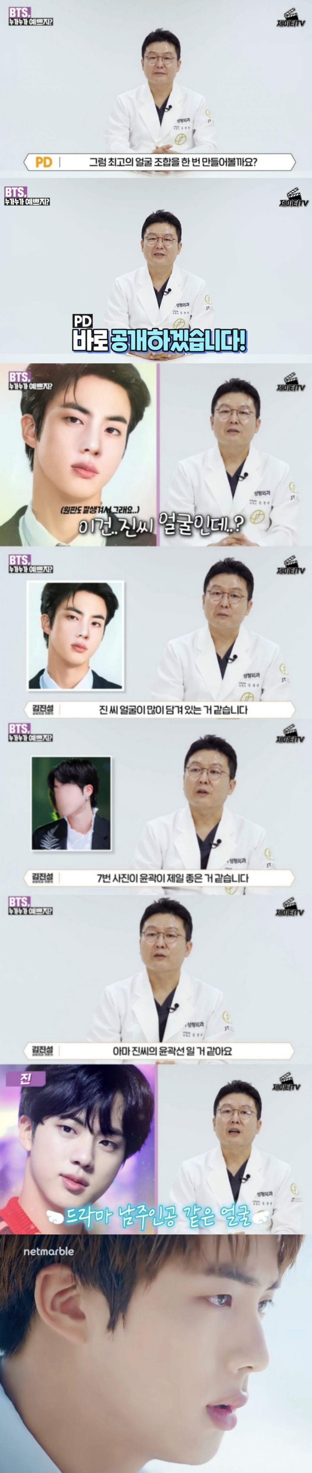 성형외과 전문의가 이상적인 이목구비와 얼굴형을 조합해보니 바로 진의 얼굴이었고, 그에 따른 폭발적인 반응이 이어지고 있는 것.