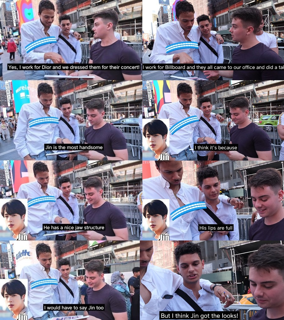 이때 자신이 디올에서 일했으며 방탄소년단에게 빌보드 의상을 입혔다고 밝힌 스태프가 우연히 투표에 참여했고, 그 또한 진을 제일 잘생겼다고 선택했다.