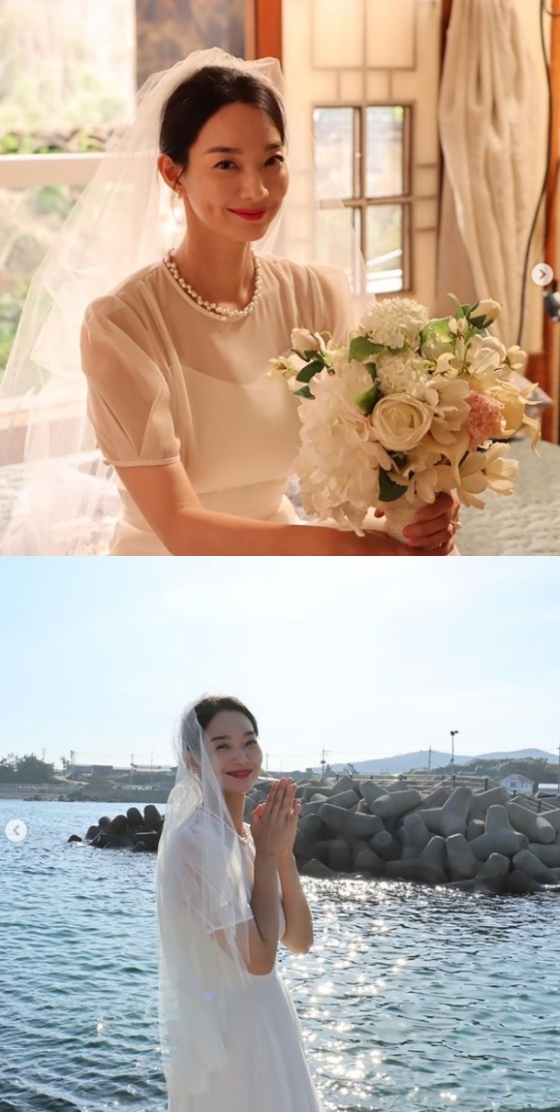 배우 신민아가 눈부신 웨딩드레스 자태로 시선을 사로잡았다.