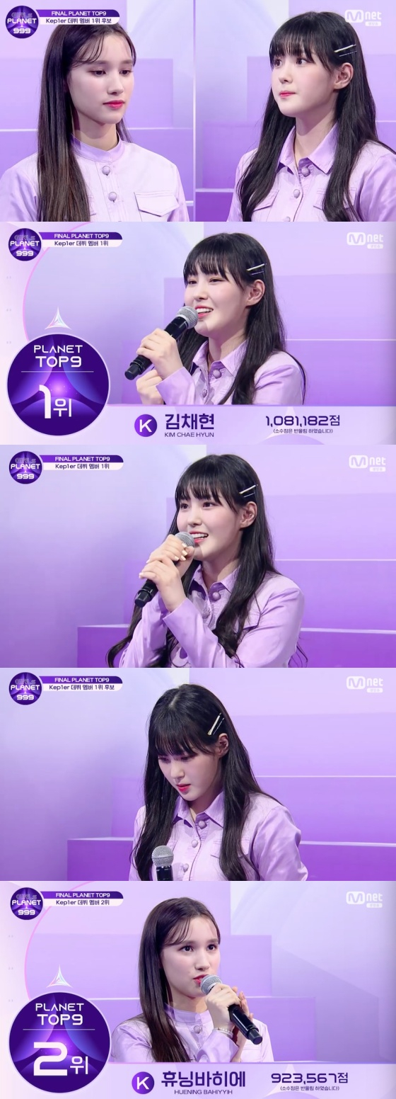 '걸스플래닛999 : 소녀대전'에서 김채연, 휴닝바이헤, 최유진, 김다연, 서영은, 강예서, 에자키 히카루, 사카모토 마시로, 션 샤오팅이 '케플러' 데뷔 멤버로 확정됐다.