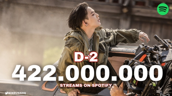 방탄소년단(BTS) 슈가가 세계 최대 음원 플랫폼 스포티파이(Spotify)에서 어거스트디 'D-2'로 4억 2200만 스트리밍을 달성하며 새로운 기록을 작성했다.