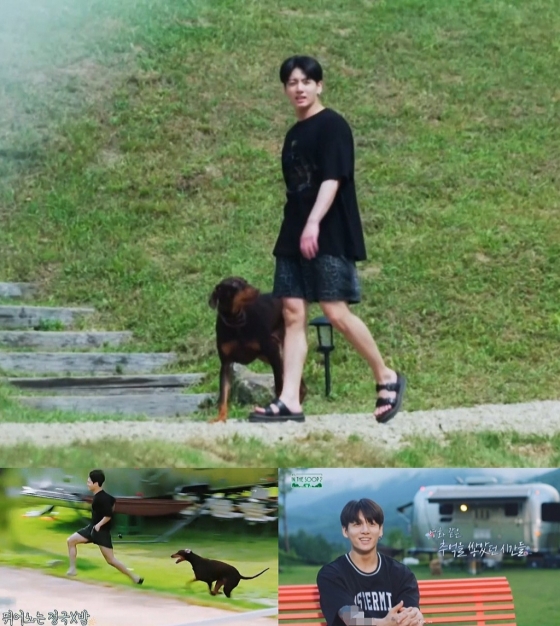 정국은 반려견 '밤'이와 숲에서 자연을 즐기며 힐링하고 교감을 나누는 모습으로 눈길을 끌었다.