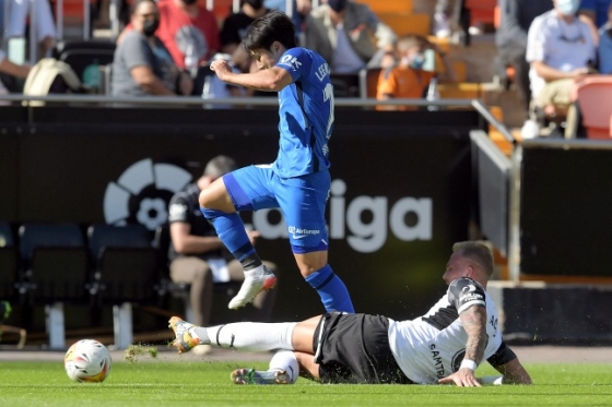 이강인은 23일(한국시간) 스페인 발렌시아 에스타디오 데 메스타야에서 열린 발렌시아와 2021~2022 스페인 프리메라라리가 10라운드 경기에서 2선 측면 공격수로 출전했다. 이 경기에서 시즌 1호 도움을 기록했지만, 동시에 시즌 1호 퇴장이라는 불명예스러운 기록도 추가했다.
