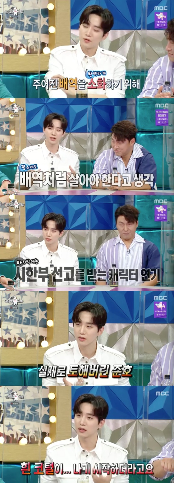가수 겸 배우 이준호가 '라디오스타'에서 연기 과몰입으로 흰 코털이 났다고 밝혔다.