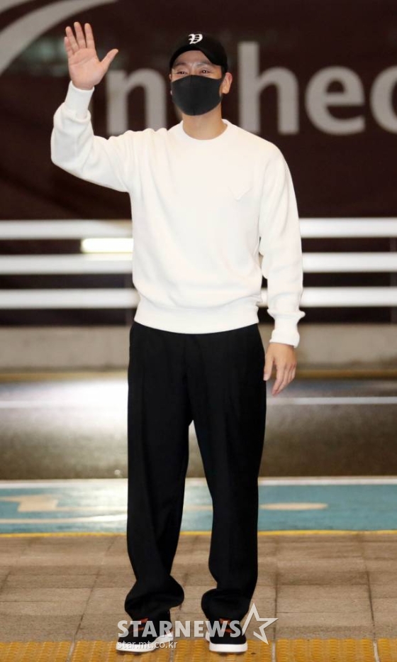 박해수는 4일 오후 인천국제공항을 통해 미국 로스앤젤레스행 비행기에 몸을 실었다. 그는 현지에서 '오징어 게임' 현지 프로모션 일정을 소화할 예정이다.