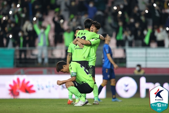 김상식 감독이 이끄는 전북은 6일 전주월드컵경기장에서 열린 하나원큐 K리그1 2021 35라운드 홈경기에서 울산을 3-2로 제압했다. 2-2로 팽팽히 맞서던 후반 추가시간 막판 일류첸코의 극적인 결승골이 두 팀의 운명을 갈랐다. 경기 후 백승호(전북)가 기쁨의 눈물을 흘릴 정도로 의미가 큰 승리였다.