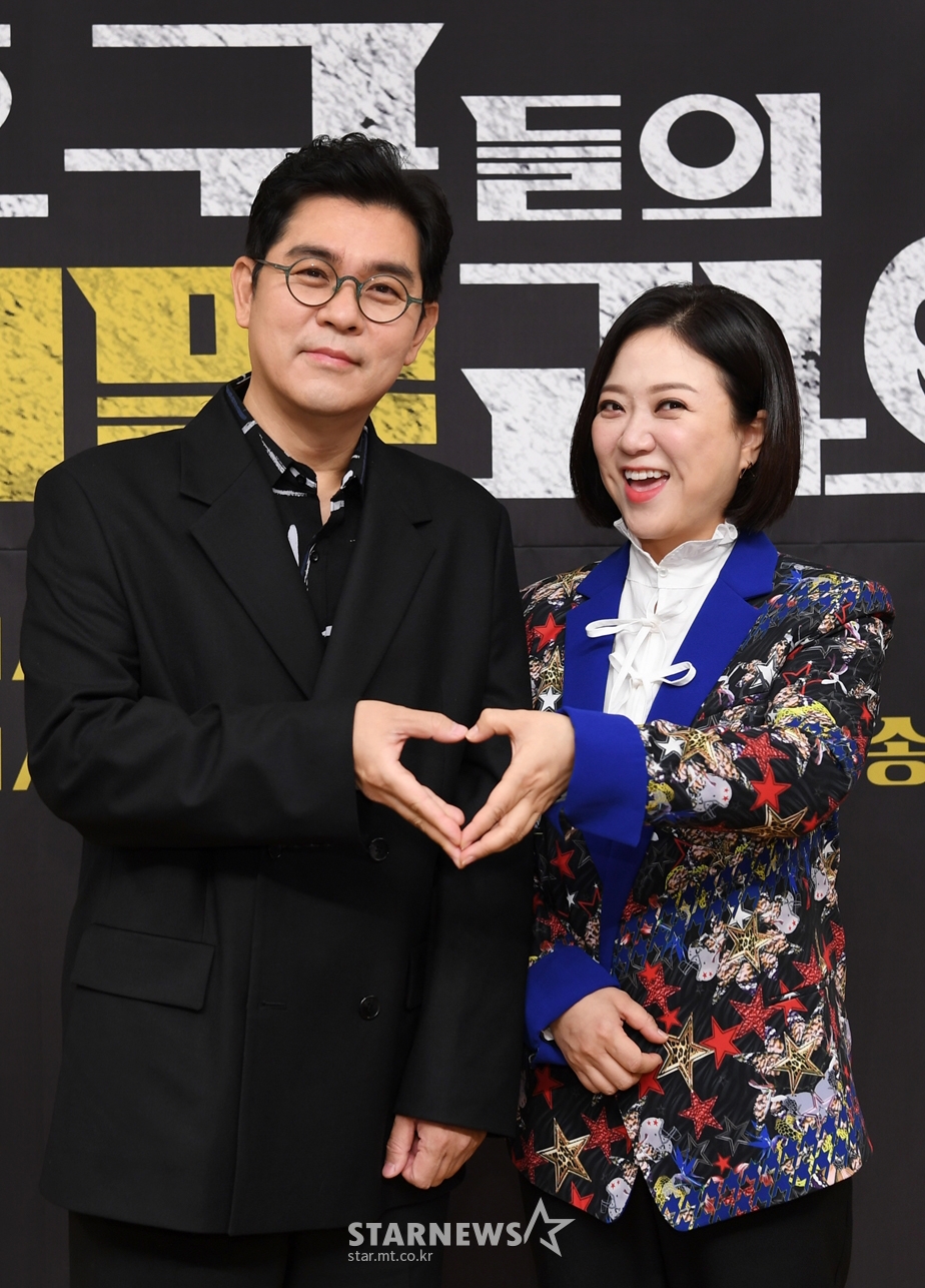 개그맨 김용만, 김숙이 15일 오전 온라인 생중계로 진행된 SBS 새 예능 '호구들의 비밀과외' 기자간담회에 참석해 포즈를 취하고 있다.