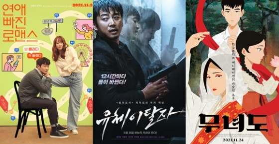 '장르만 로맨스'가 마블 영화 '이터널스'를 꺾고 박스오피스 1위에 오르며 위드 코로나 속 한국 영화의 저력을 보여주고 있다. 이런 가운데 새로운 한국영화가 개봉해 관객을 만난다.