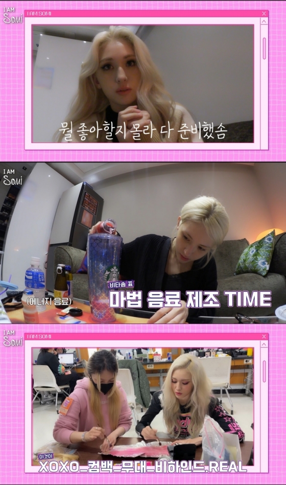 공개된 영상속 전소미는 컴백쇼 준비 중 공개된 'XOXO' 앨범 샘플러 영상을 보면서 설렘과 긴장감을 감추지 못했다.