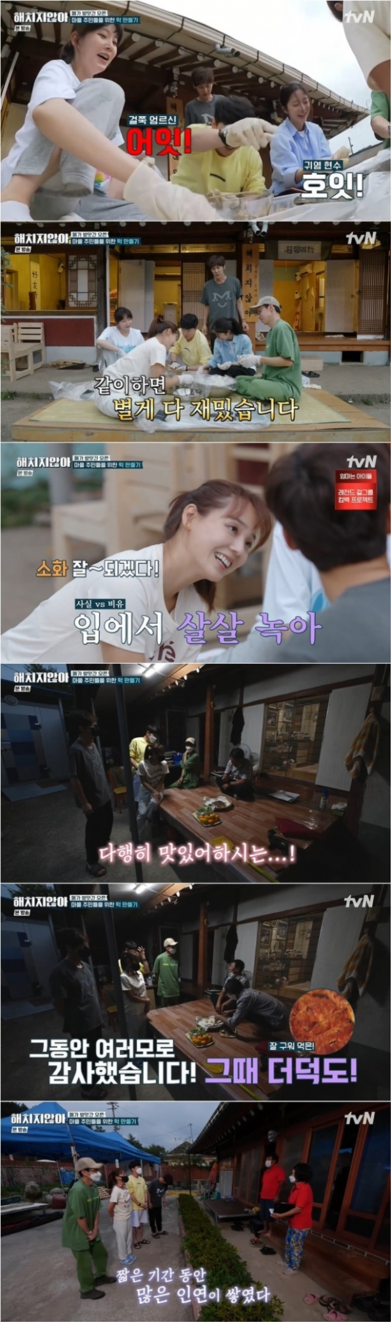 옆집 이장님은 흑임자 인절미를 먹곤 "나이 든 사람들도 만들기 어려운데 어떻게 이렇게 잘 만들었을까"라며 칭찬했고 이어 "많이 도와주지 못해서 미안하다"며 미안해하기도 했다.