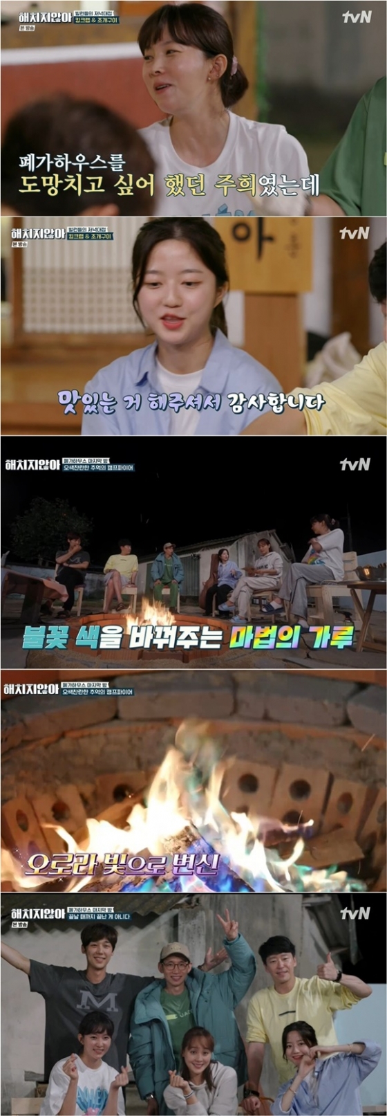 이날 역대급 만찬에 극찬이 쏟아졌다. 특히 게스트 중 가장 잘 먹는 모습으로 눈길을 끈 유진은 "배우 안 했으면 통통한 삶을 살았을 거야"라고 고백하며 폭풍 먹방을 선보였다. 이후 캠프파이어로 폐가하우스의 추억을 회상하며 감성에 젖은 채 마지막 밤을 마무리했다.