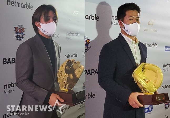 김상수와 강민호는 1일 서울 외발산동 메이필드호텔에서 열린 2021 마구마구 플레이어스 초이스 어워즈에서 각각 2루수 부문과 포수 부문 수상자가 됐다. 이번 시상식은 수비 점수와 선수단 투표로 선정됐다. 결국 김상수와 강민호는 선수들이 뽑은 가장 수비 잘하는 2루수와 포수가 됐다.