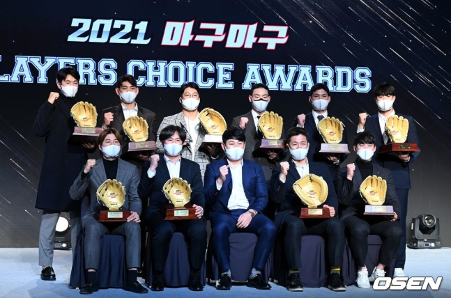 선수협은 1일 서울 메이필드호텔에서 2021 마구마구 플레이어스 초이스 어워즈를 개최했다. 1루·2루·3루·유격의 내야수와 외야수 3명, 포수와 투수 부문 수상자가 나왔고, 팬들이 뽑은 스타 플레이어상도 있었다. 그리고 MVP인 올해의 선수상까지 수여했다.