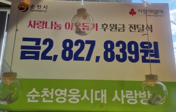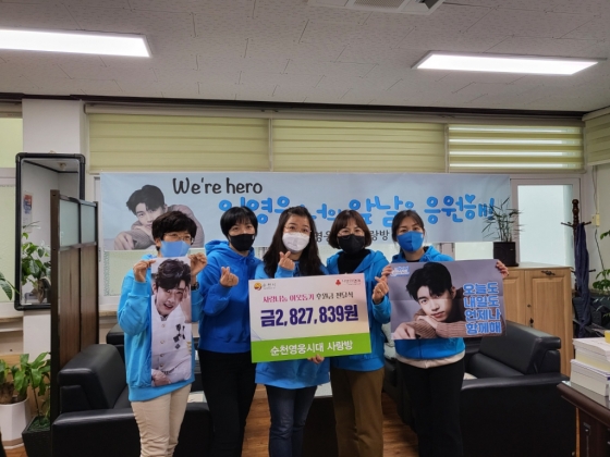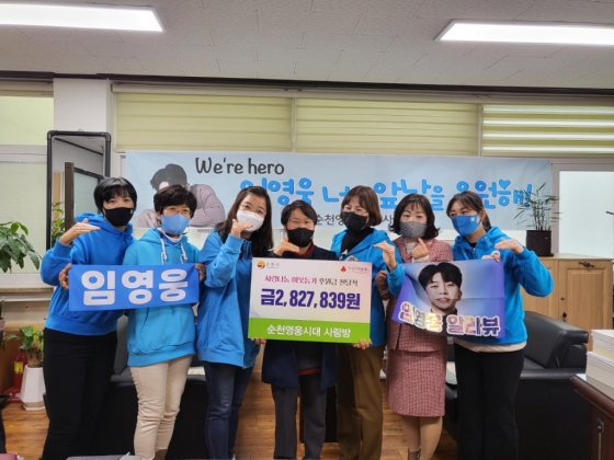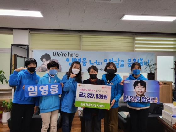 임영웅 팬클럽 순천 영웅시대 사랑방은 순천시를 통해 사랑의열매에 사랑나눔 이웃돕기 후원금 282만 7839원을 전달했다.