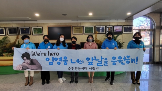 순천 영웅시대 사랑방은 "연말연시 우리가 살고있는 순천에 아주 작은 도움의 손길이 되고자 회비통장 잔고 전액을 털어 기부하게 됐다"며 "앞으로도 임영웅이라는 가수의 팬덤으로 선한 영향력을 끼치는 일들에 동참하겠다"고 전했다.