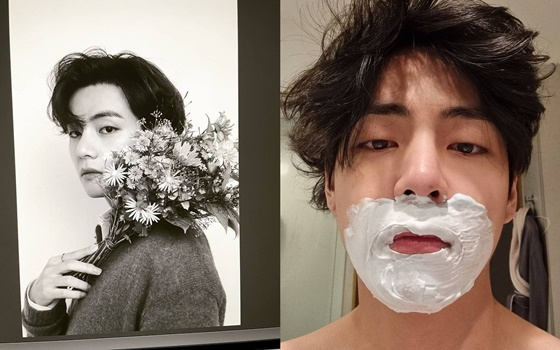 뷔는 가장 꾸밈없는 모습을 공개했다. 그는 "아기공룡 둘리"라며 공룡 뼈 같은 전시회 작품과 꽃을 들고 찍은 화보를 공개했다. 이와 함께 면도 중인 모습도 공개했다.