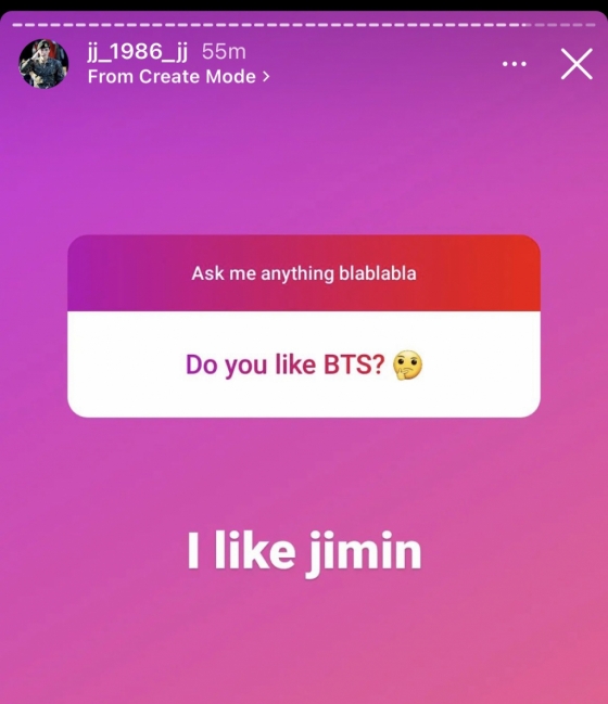 김재중은 자신의 인스타스토리에서 팬들의 질문에 답을 하던 중 방탄소년단을 좋아하냐는(Do you like BTS?) 팬의 질문에 '지민을 좋아한다'(I like Jimin)라는 글을 남겨 최애가 지민임을 밝혔다.