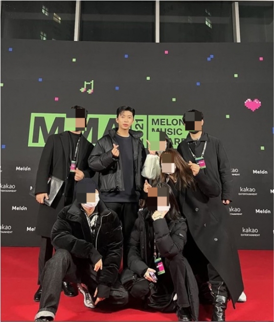 가수 임영웅이 MMA 2021에서 함께한 스태프들과 기념사진을 공개했다.