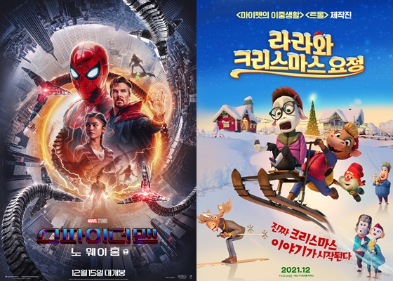 12월 연말 극장가를 앞두고 코로나19 확산세가 거세다. 이런 가운데 '스파이더맨 : 노 웨이 홈'이 개봉 전 부터 예매 돌풍을 일으키며 흥행에 대한 기대감을 모은다. '스파이더맨 : 노 웨이 홈'은 팬데믹 이후 최고의 예매량을 기록하며 연말 극장가 관객 모으기를 시작했다. 또 크리스마스 분위기를 담은 애니메이션 '라라와 크리스마스'도 개봉한다.