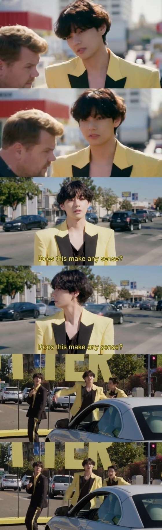 제임스 코든과 대화하는 장면에서 뷔는 완벽한 영어발음과 부드러운 목소리로 시청자들을 사로잡았다. 뷔는 제임스 코든이 콘서트 장이라고 소개한 횡단보도를 보며 "제임스, 여기는 콘서장이 아니라 횡단보도예요"라고 능숙한 영어로 답했다.