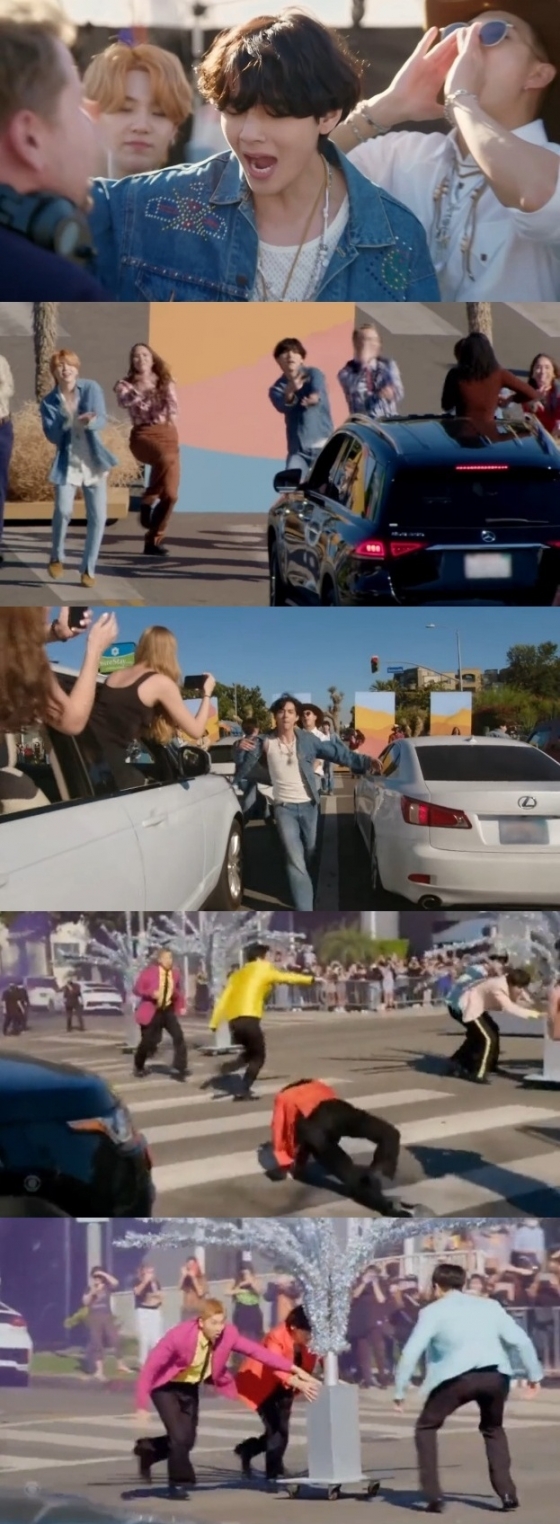 횡단보도에서 우연히 방탄소년단이 퍼포먼스를 펼치는 장면을 목격한 현지인들은 깜짝 놀라며 차안에서 노래를 따라 부르거나 춤을 추며 우연히 맞이한 행운을 즐겼다.