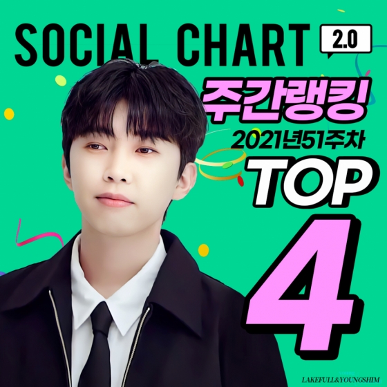 가온 소셜차트는 유튜브, 틱톡, 브이라이브, 뮤빗, 마이셀럽스 등 소셜미디어 인기도를 종합한 차트다.