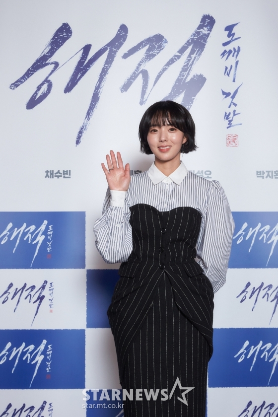 배우 채수빈이 29일 오전 온라인 생중계로 진행된 영화 '해적: 도깨비 깃발'(감독 김정훈) 제작발표회에 참석해 포즈를 취하고 있다.
