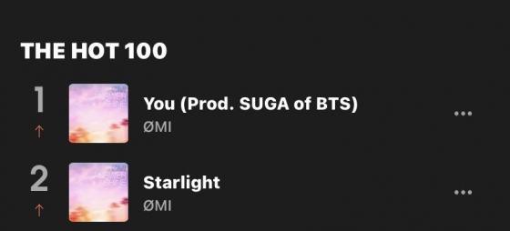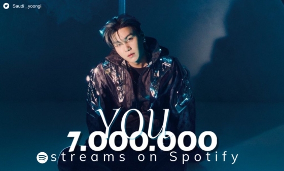 방탄소년단(BTS) 슈가가 프로듀싱한 일본 가수 ØMI의 'You (Prod. SUGA of BTS)'가 세계 최대 음원 플랫폼 스포티파이(Spotify) 700만 스트리밍을 돌파했다.