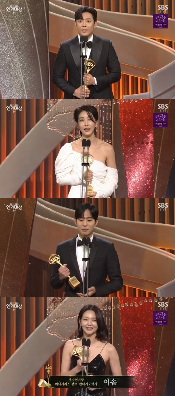 배우 김주헌과 전서연, 안효섭, 이솜이 '2021 SBS 연기대상' 남녀 우수 연기상을 수상했다.
