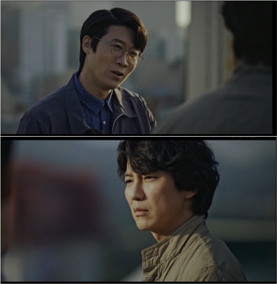 '악의 마음을 읽는 자들'에서 진선규가 김남길에게 프로파일러팀에 합류할 것을 제안했다.