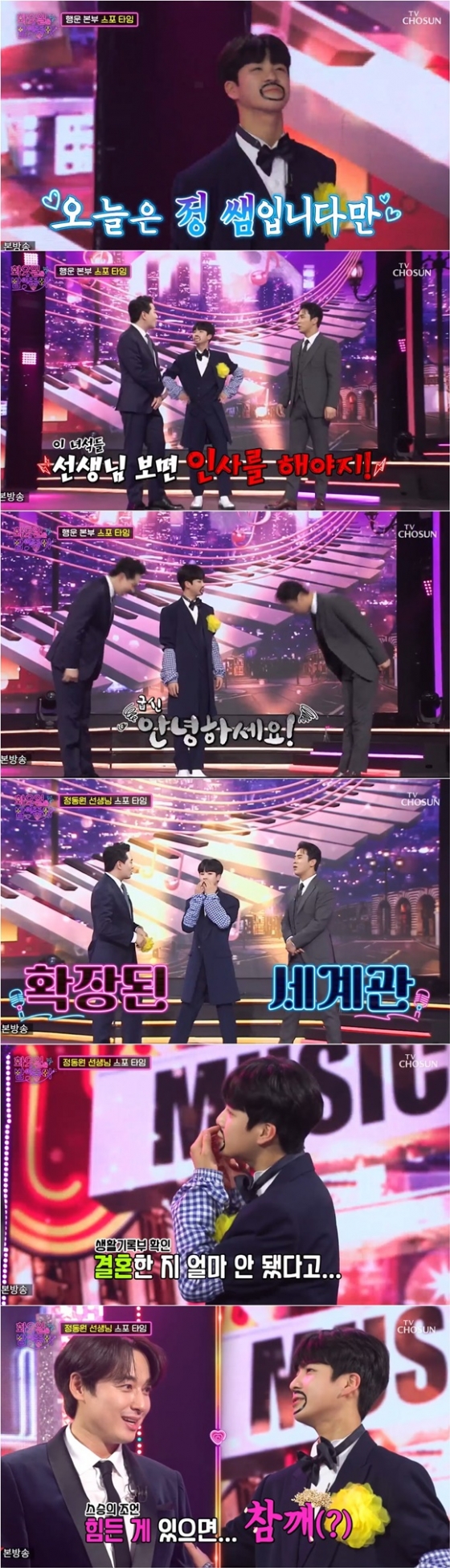 '화요일은 밤이 좋아'에서 가수 정동원이 정 쌤으로 등장하며 또다른 부캐릭터를 선보였다.