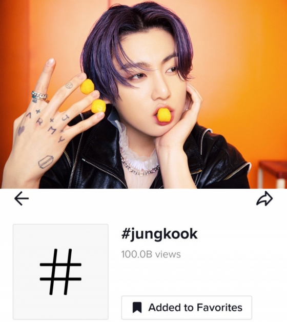 정국은 글로벌 쇼트폼 비디오 플랫폼 틱톡에서 자신의 고유 명사 개인 해시 태그 '#jungkook' 으로 1000억 뷰를 넘어섰다.