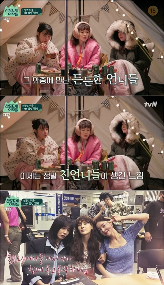 18일 오후 방송된 tvN 예능프로그램 '산꾼도시여자들'에서 이선빈, 한선화, 정은지가 산 속 감성 캠핑을 함께했다.