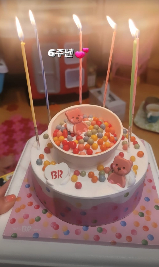 황정음은 "6주년"이라며 초 6개에 불을 붙인 케이크 사진으로 6주년을 직접 인증했다.