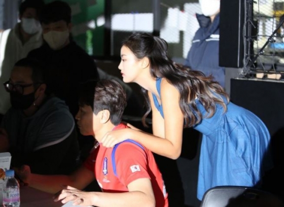 사진에는 재아가 이동국과 함께 촬영 일정을 소화하고 있다.