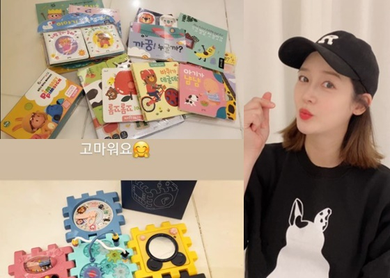 핑클 출신 성유리가 쌍둥이 딸을 위한 책과 장난감 선물을 받고 고마운 마음을 전했다.