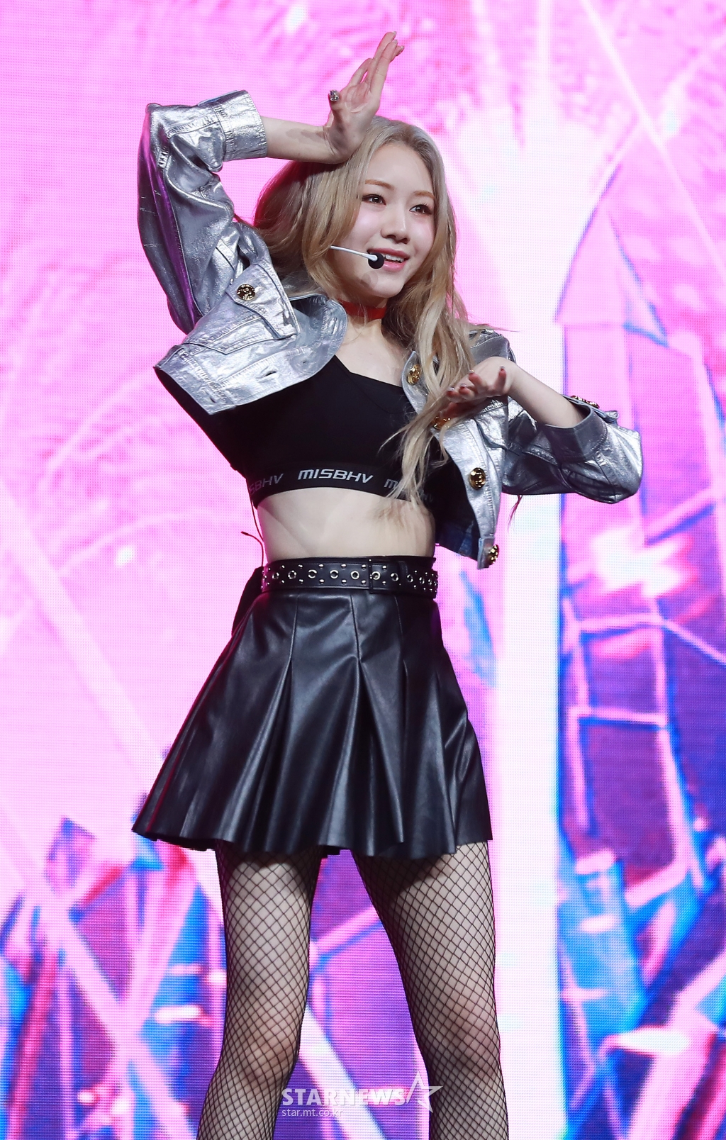 걸그룹 로켓펀치(Rocket Punch) 다현이 28일 오후 서울 광진구 예스24 라이브홀에서 진행된 네 번째 미니앨범 '옐로 펀치'(YELLOW PUNCH) 발매기념 쇼케이스에서 신곡을 선보이고 있다.