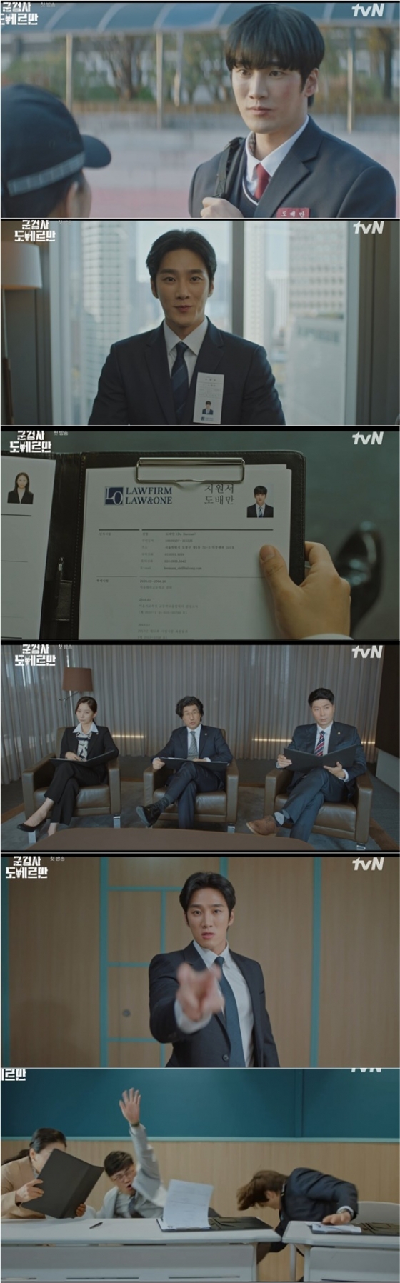 28일 오후 방송된 tvN 월화드라마 '군검사 도베르만'에서 도배만(안보현 분)이 고등학교에서 퇴학당했다.