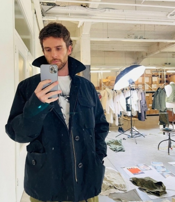 가이 베리맨이 인스타그램에 올린 사진 속에서 뷔는 그가 론칭한 브랜드 'APPLIED ART FORMS'의 의상을 멋지게 소화했다.