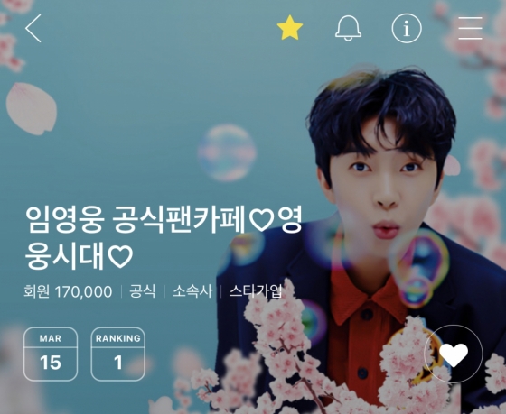 임영웅 공식 팬카페 '영웅시대'는 3월 14일 회원수 17만 명을 달성했다. 2017년 5월 12일 팬카페 개설 이후 1768일 만이다. 지난해 7월 28일 16만 회원 돌파 후 230일 만에 1만 명이 증가하며 '17만 대군'으로 또다시 몸집을 키웠다.