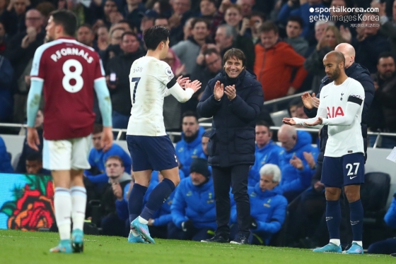 이번 웨스트햄전에서도 손흥민을 향한 콘테의 사랑이 느껴졌다. 후반 막판 손흥민은 모우라와 교체됐다. 손흥민이 모우라와 인사를 나누는데 콘테가 옆에 서서 환하게 웃으며 손흥민을 기다리는 모습이 포착됐다.